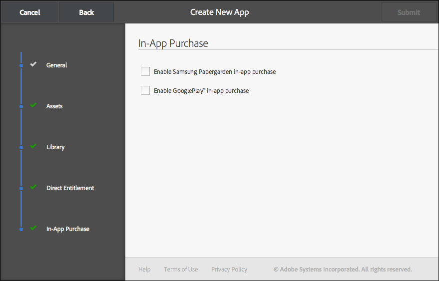 Pour savoir comment configurer la facturation In-App pour les appareils Android, reportez-vous à la page Processus de publication DPS pour périphériques Android.
