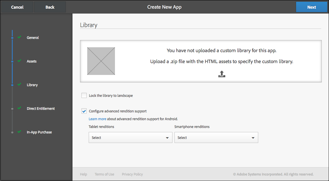 Les versions précédentes de DPS permettaient de créer des applications Android héritées (basées sur AIR). Désormais, il n’est plus possible de créer ou de modifier des applications Android héritées.