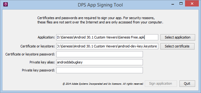 Lancez l'outil de signature d'application de DPS et suivez les invites pour signer l’application.