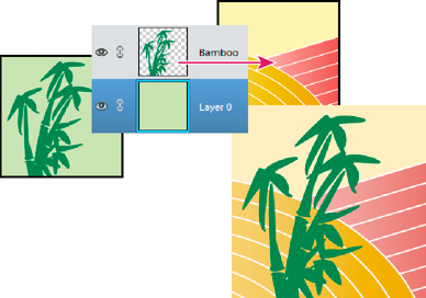 Remarque :si le calque de base fusionné est un calque de texte, de forme, de couleur en aplat, de dégradé ou de remplissage à motif, vous devez le simplifier.