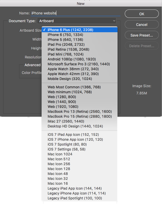 Sélectionnez Fichier > Ouvrir, puis choisissez le fichier Photoshop que vous souhaitez convertir en plan de travail.