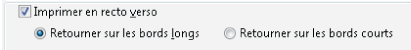 - Dans la boîte de dialogue Imprimer, activez l’impression recto verso, puis sélectionnez un bord à retourner.