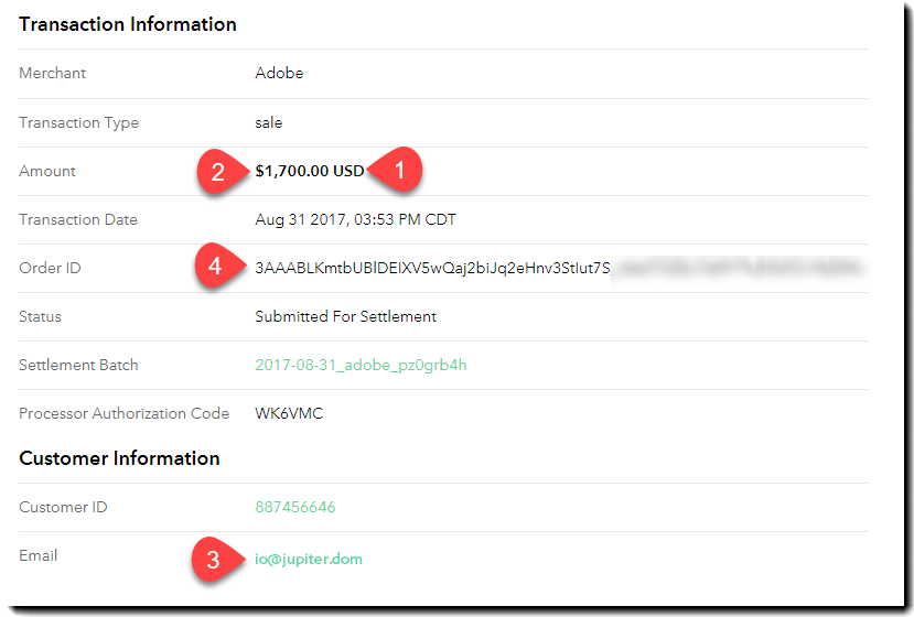 L’environnement Acrobat Sign stocke uniquement les informations d’identification de l’API au compte Braintree ainsi que le numéro de transaction transmis par Braintree (enregistré dans le journal d’audit d’Acrobat Sign).