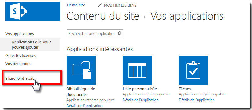 3. Cliquez sur SharePoint Store.