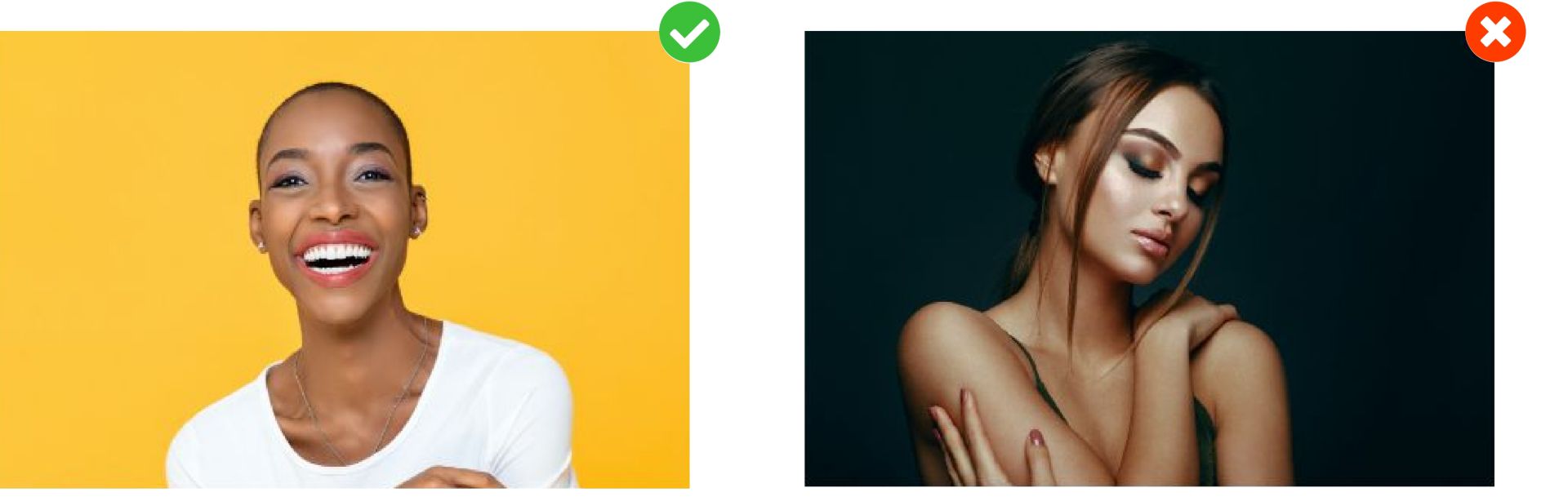 Si vous optez pour des images qui mettent en scène des personnes, ne les réduisez pas à l’état d’objet. Évitez la nudité, les poses suggestives et les vêtements transparents.