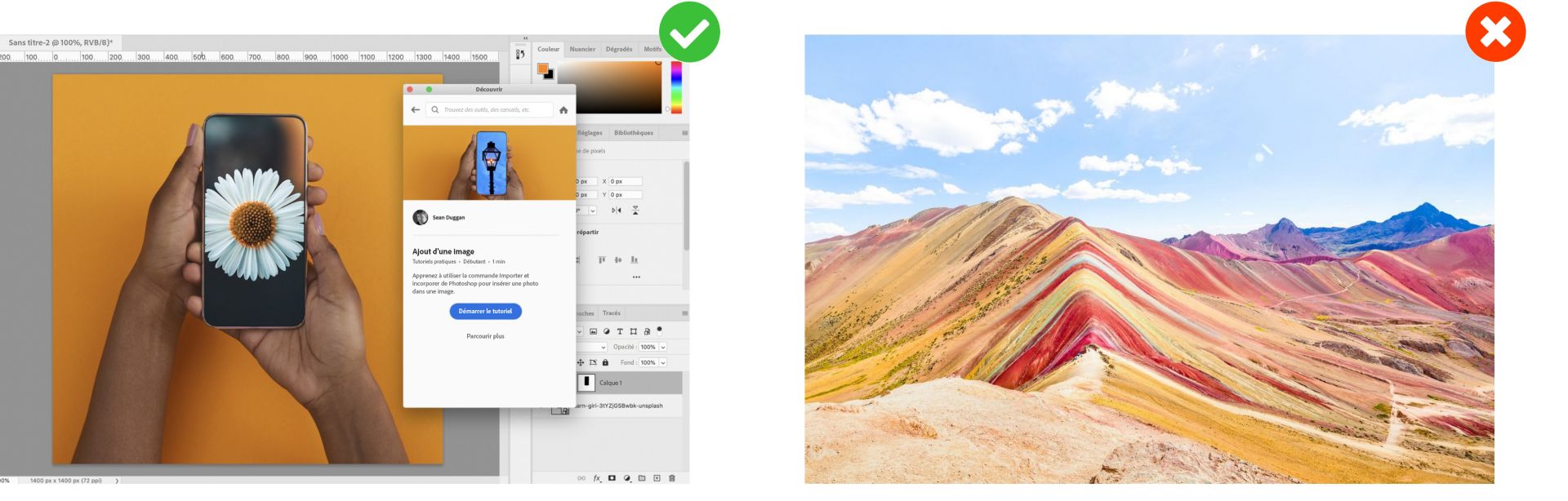 • Utilisez uniquement des images standard d’Adobe Stock (pas premium).