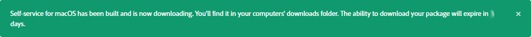 If you are creating macOS packages, the Adobe Package Downloader is downloaded to your computer. Open and run to complete download of package. For further details, see here.