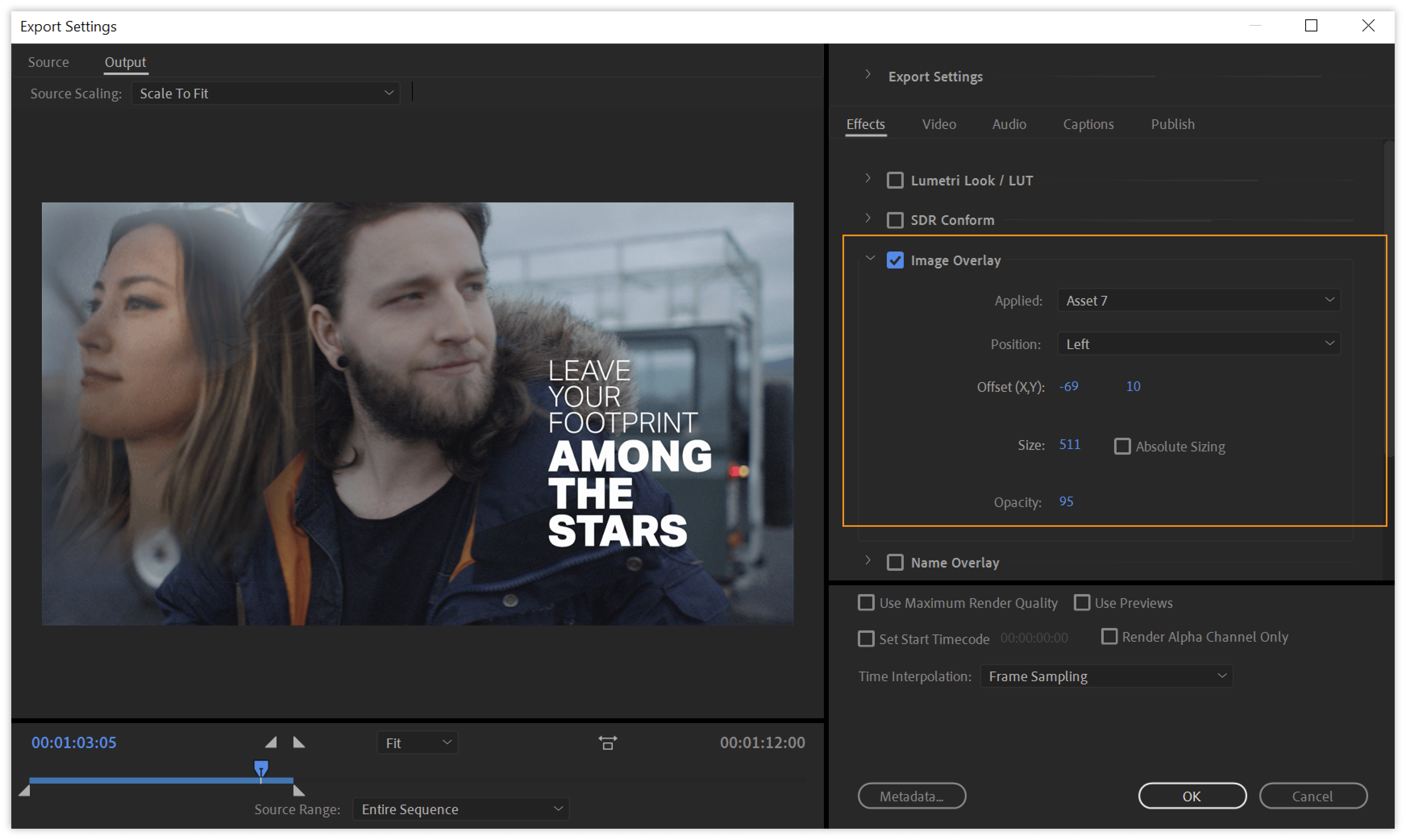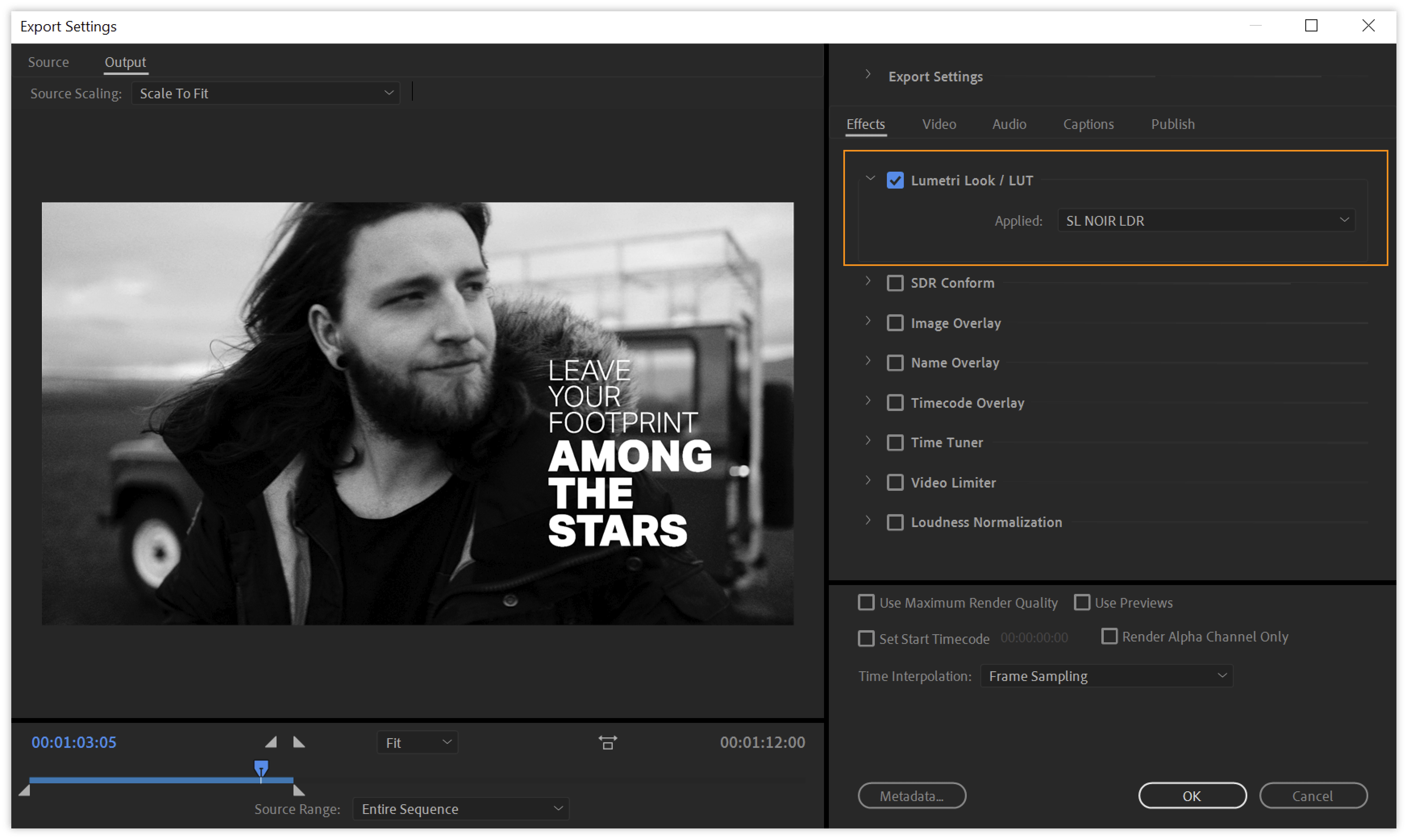 - Off: No XMP metadata from the source is exported. However, basic metadata about the exported file, such as export settings and start timecode, is always exported, even when None is chosen.