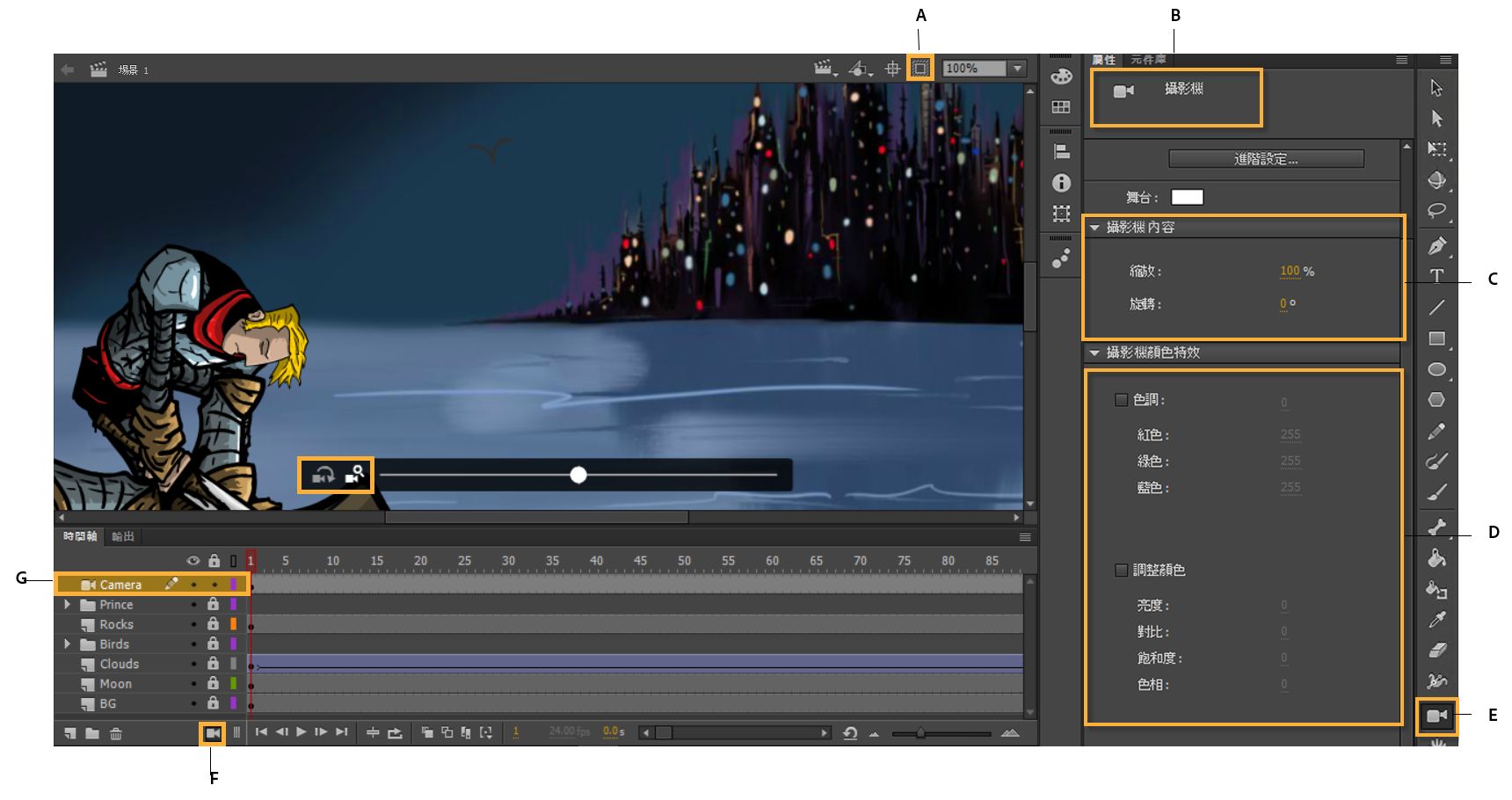 28. 使用 Animate 中的攝影機