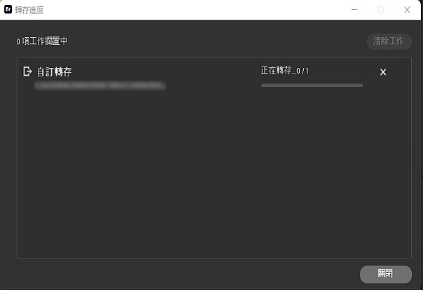 3. 選取「清除」以移除工作清單。選取「關閉」以退出進度視窗。
