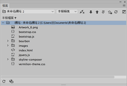 您可以使用「檔案」面板來檢視檔案和資料夾 (檢查它們是否與 Dreamweaver 網站相關聯),並執行標準檔案維護作業,例如開啟和移動檔案。