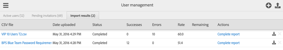 當您使用大量匯入使用者程序將多位使用者新增至您的 Enterprise 時,系統會產生狀態報告,並在 Admin Console 中顯示。報告檔案只會在報告產生後保留 90 天。如果您想將這些檔案保留作個人記錄,便必須將它們下載至您的本機系統。
