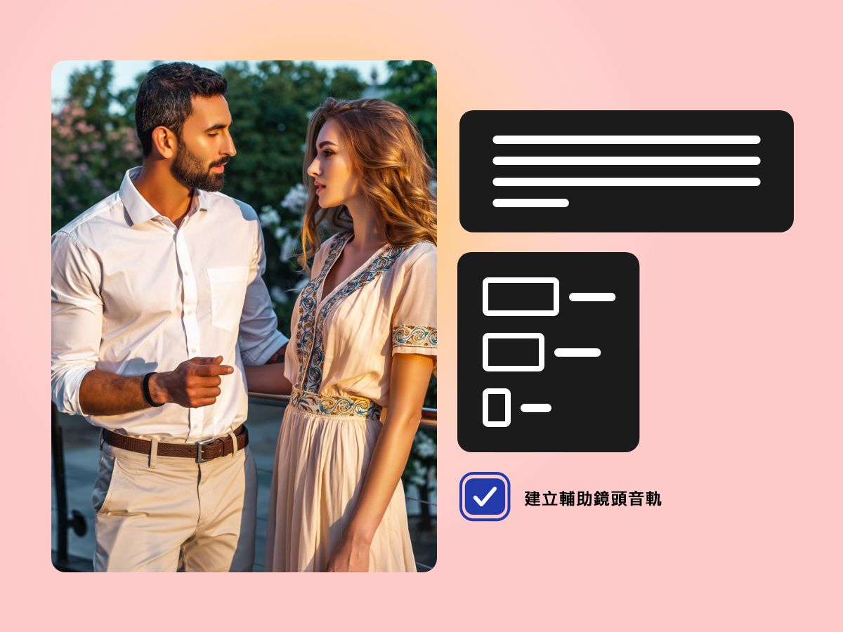 允許調整影片設定,例如外觀比例和影片持續時間,甚至可在產生快速剪輯時新增輔助鏡頭軌。