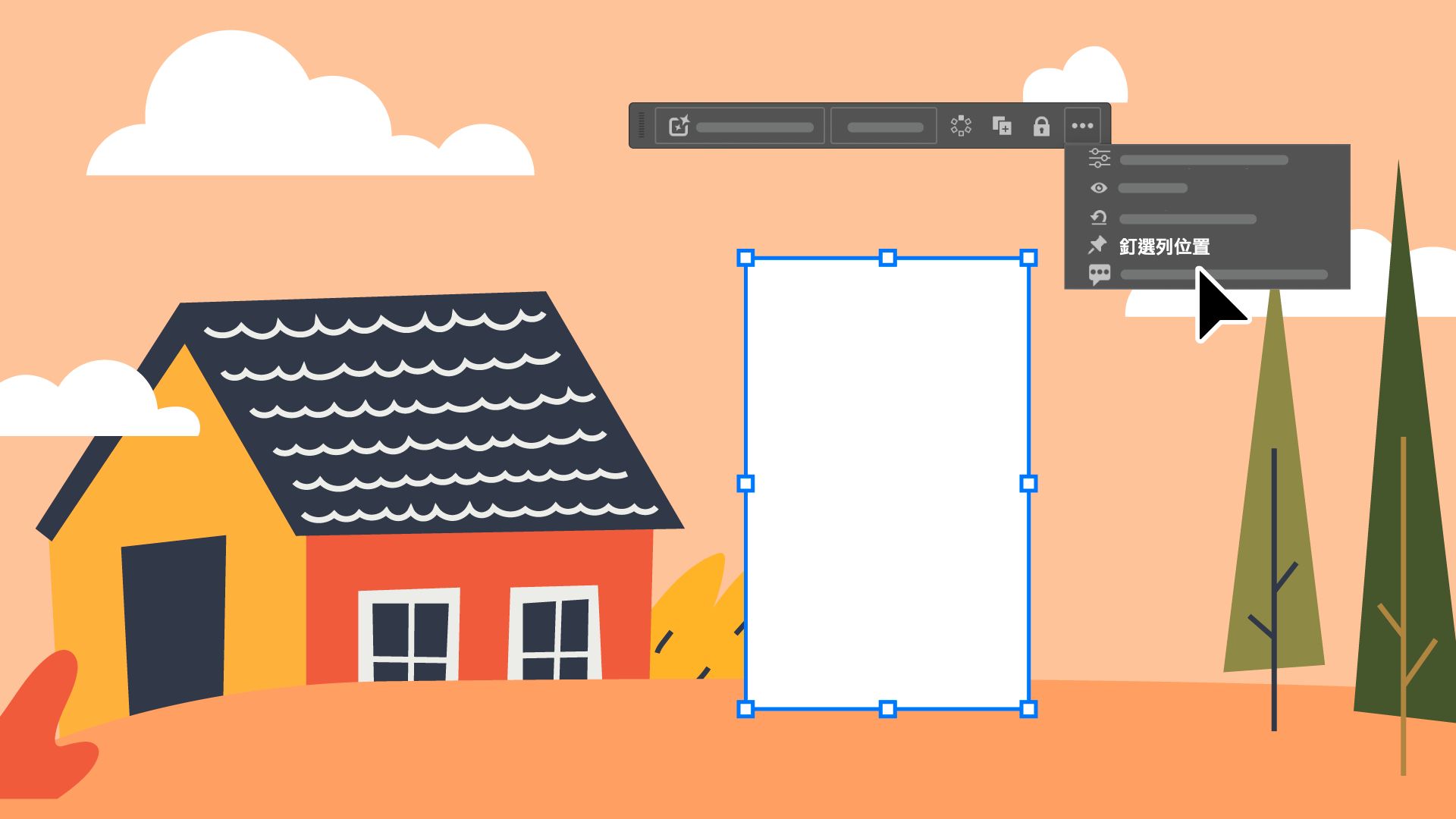 您現在可以將「相關工作列」釘選到您選擇的位置,以確保在選取不同物件或文件時,該工具列仍維持在相同位置。這種持續行為可讓您立即存取相關工具和動作,並加速您的創作工作流程。深入瞭解相關工作列。