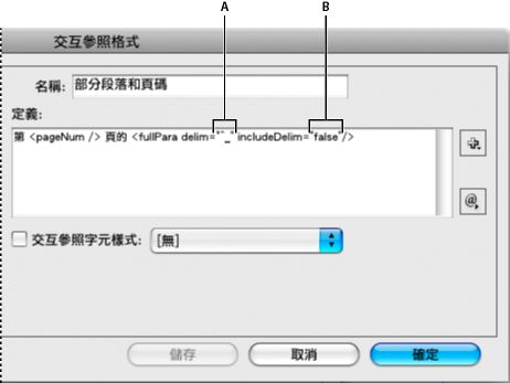 當您建立或編輯交互參照時,請按一下「建立或編輯交互參照格式」按鈕