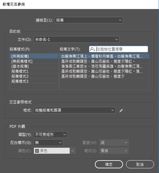 如果您選擇「段落」,可以在您指定的文件中建立任何段落的交互參照。