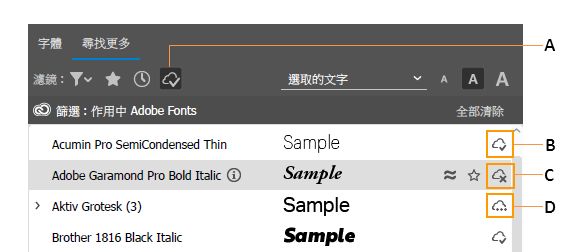 僅在字型清單中顯示透過 Adobe Fonts 啟用的字型。