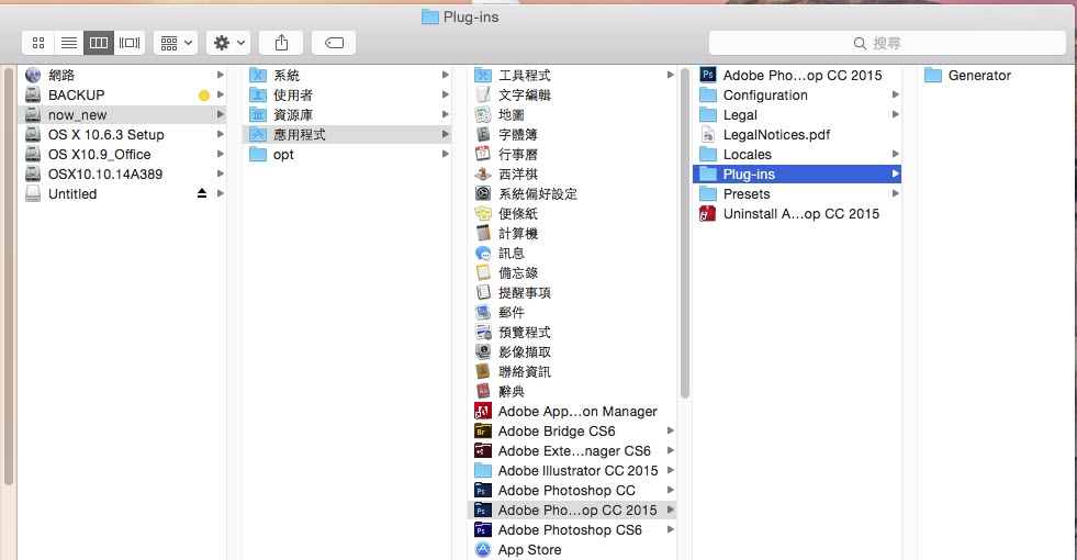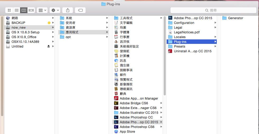 磁碟機代號:/Library/Application Support/Adobe/Plug-Ins/CC