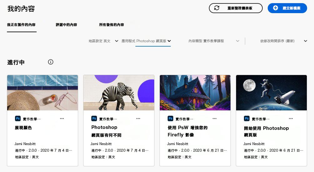 TBW 是學習內容入口網站 (LCP) 的一部分,您需要 LCP 登入才能在 TBW 中建立教學課程。登入後,請在「我的內容」下查看進行中或已發佈的教學課程。如果您使用各種介面和產品,請利用篩選器來尋找特定教學課程。