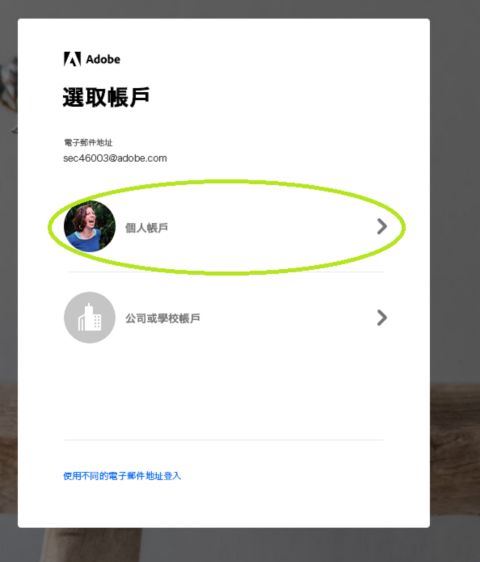 - 如果您在登入時遇到問題,請嘗試登出並重新登入以選取「個人帳戶」選項。