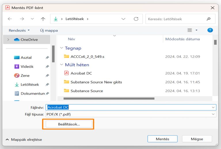 Az Elővizsgálat párbeszédpanelen válassza ki a Mentés PDF-ként/X-4 opciót, majd válassza az OK gombot