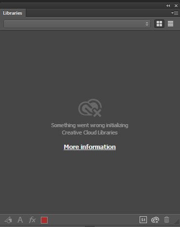 Amikor a Creative Cloud Libraries könyvtárakat támogatott asztali alkalmazásokban próbálja használni, a panel nem töltődik be és a következő hibát adja vissza: