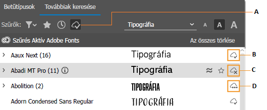 Az Adobe Fonts-ból hozzáadott betűtípusok szűrése |