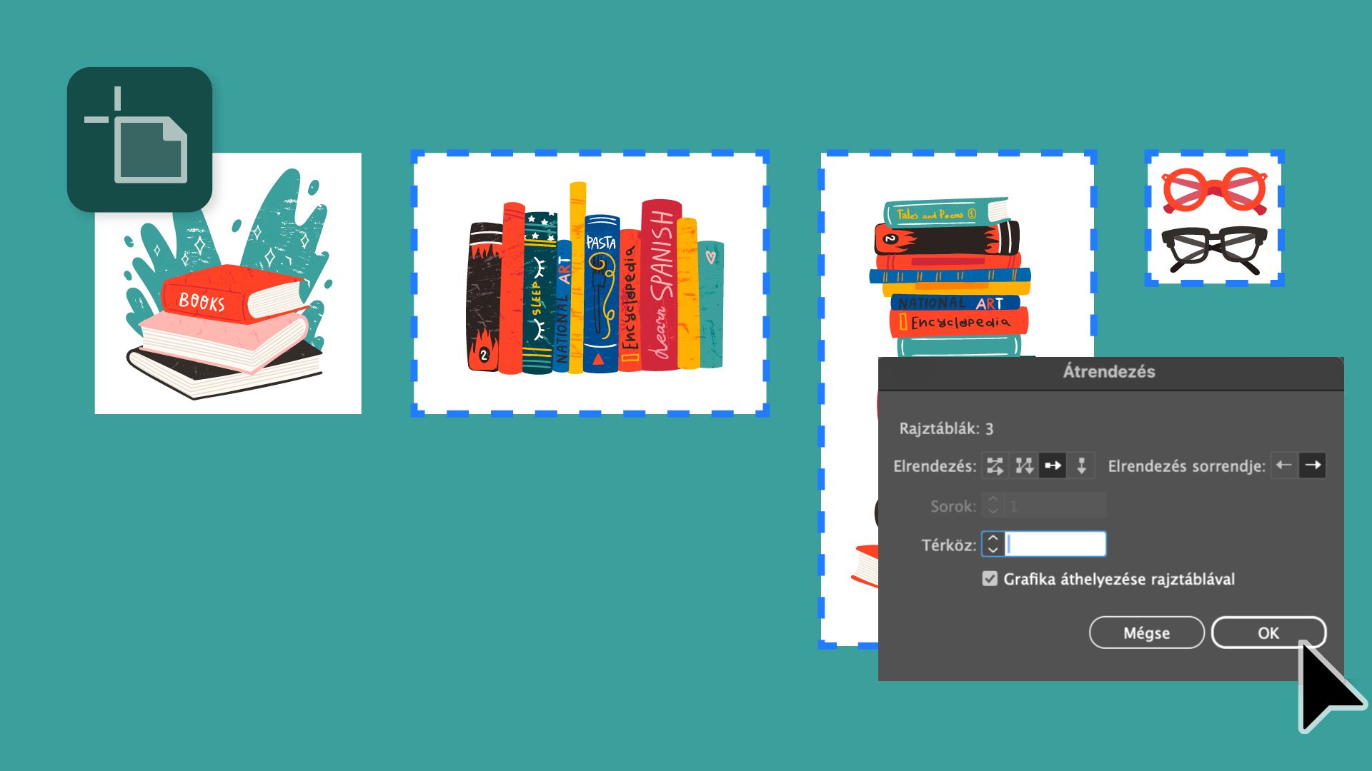 A kiválasztott rajztáblák átrendezése a vászon bármely pontjára