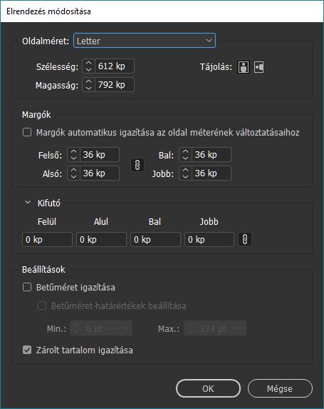 Válassza a Margók automatikus igazítása az oldal méretének változtatásaihoz lehetőséget, hogy a program dinamikusan az oldal méreteinek változtatásaihoz igazítsa a margókat, vagy adja meg a margó értékeit manuálisan.