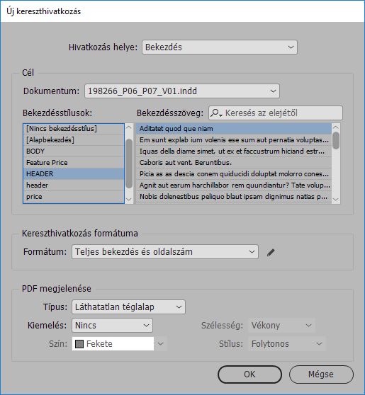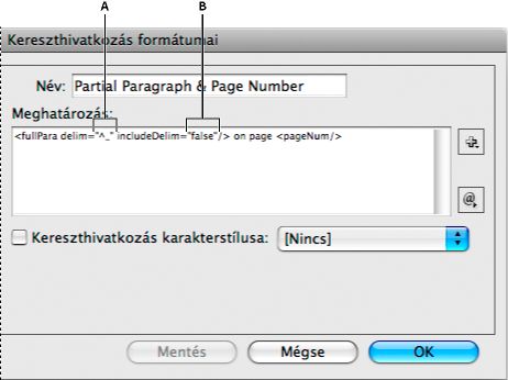 Ha az egész kereszthivatkozást el szeretné látni karakterstílussal, akkor válassza a Kereszthivatkozás karakterstílusa lehetőséget, majd válasszon a listában szereplő karakterstílusok közül, vagy hozzon létre egyet azok alapján.