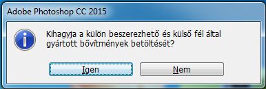 Tartsa nyomva a Shift billentyűt, és indítsa el a Photoshopot. Indítás közben megjelenik egy párbeszédpanel, rajta a Kihagyja a külön beszerezhető és külső fél által gyártott bővítmények betöltését? kérdéssel.