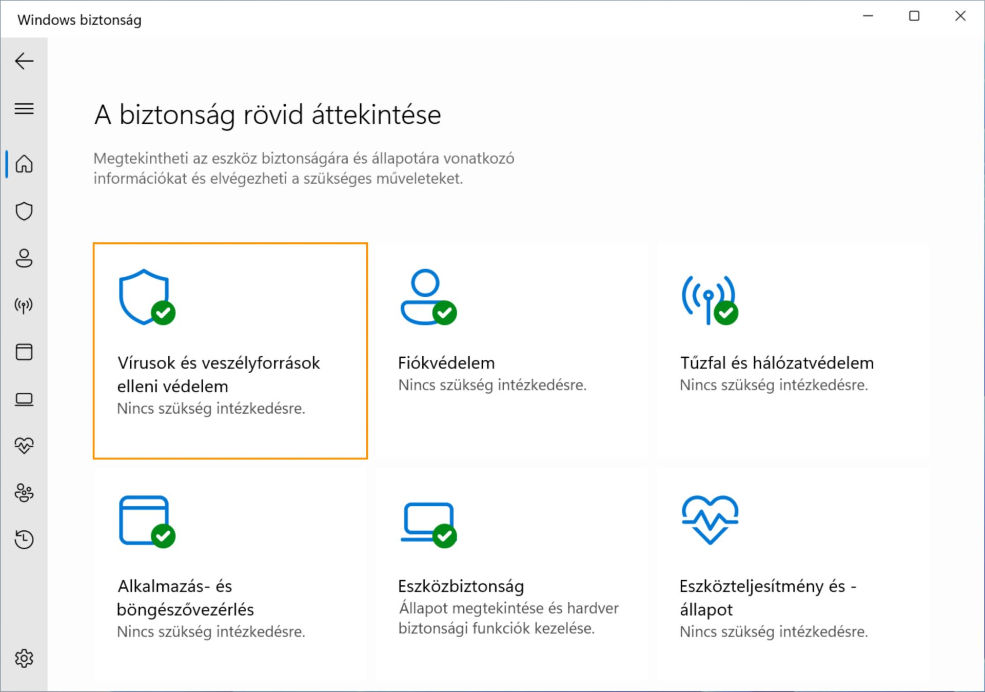 Válassza a Vírusok és veszélyforrások elleni védelem lehetőséget.