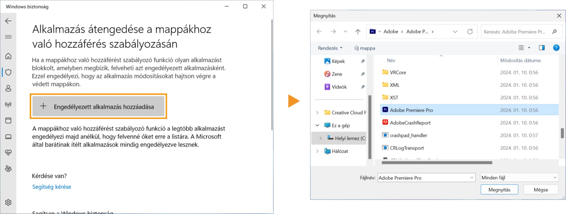 A Premiere Pro 13.1.1 vagy újabb verziója indításkor összeomlik, ha engedélyezve van a Mappákhoz való hozzáférés szabályozása.