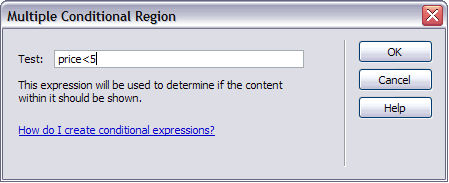In the Conditional Region dialog box, enter the conditional expression to use for the region.
