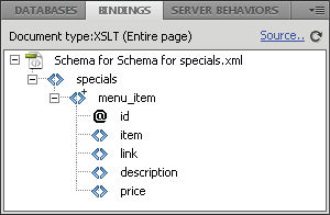 The XPath Expression Builder is a Dreamweaver feature that lets you build simple XPath expressions for identifying specific nodes of data and for repeating regions. The advantage of using this method instead of dragging values from the XML schema tree is that you can format the value that is displayed. The current context is identified based on the position of the insertion point in the XSL file when the XPath Expression Builder dialog box is opened. The current context is in boldface type in the XML schema tree. As you make selections within this dialog box, the correct XPath statements, relative to your current context, are generated. This simplifies the process of writing correct XPath expressions for beginners and advanced users.