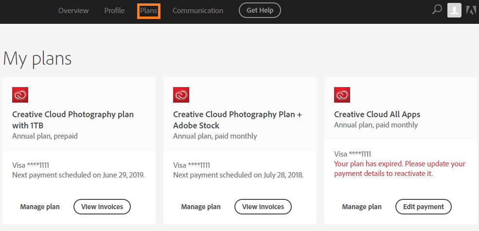 Sign in to https://accounts.adobe.com. If you’re having trouble signing in, see Adobe ID account and sign-in troubleshooting.