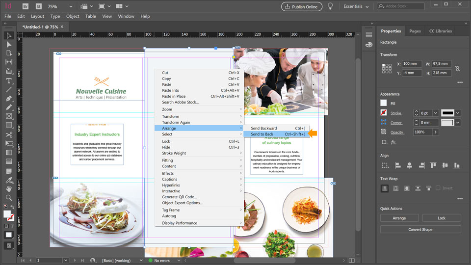 26. The rectangle will overlay your text and image. Right-click the rectangle and chose Arrange > Send To Back.