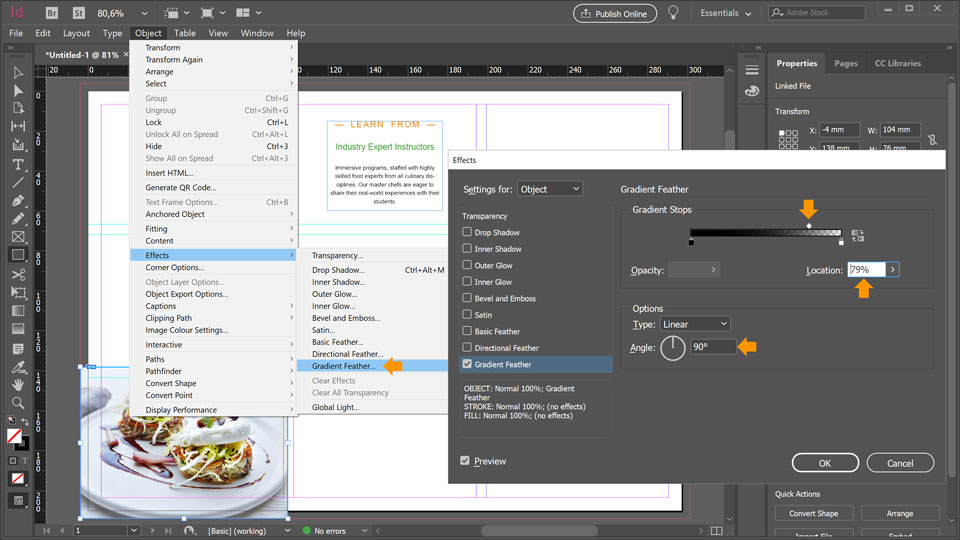 22. With the image selected, chose from the top menu Object > Effects > Gradient Feather.