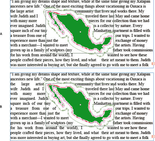 Wrap Around Bounding Box setting (left) compared to Wrap Around Object Shape setting (right) Wrap Around Bounding Box setting (left) compared to Wrap Around Object Shape setting (right) Jump Object