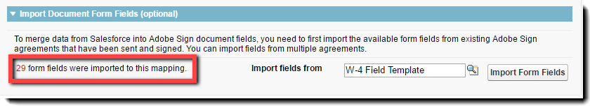 Successful mapping requires that you have pre-built forms with defined field names so you can logically relate the SFDC object field to the Adobe Sign form field.