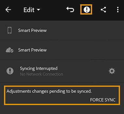 ) icon in the Albums view. In this scenario, you can choose to download the Smart Preview of an image for editing and force sync any image adjustments using your cellular network's data.