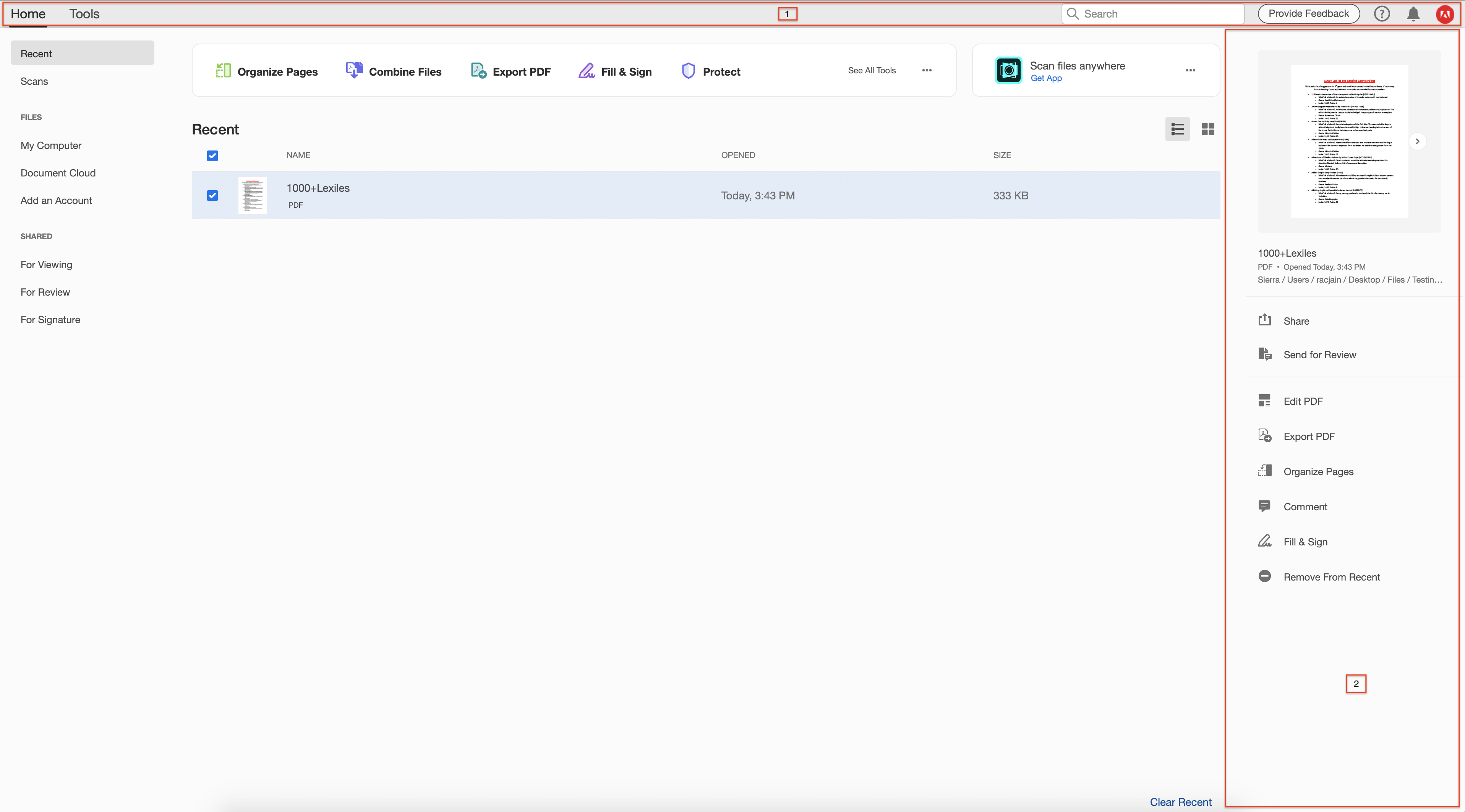 בחרו את התצוגה האידיאלית עבורכם ב‑Acrobat. Acrobat כעת מתאים את עצמו אוטומטית להגדרות קנה המידה של המערכת שלכם וזוכר את בחירתכם, ומאפשר לכם ליהנות מחוויה עקבית בכל המסכים.