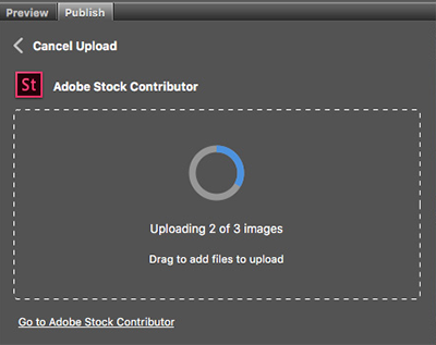 - בחלונית Publish, לחץ על Adobe Stock Contributor > Setup.