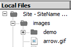 בגרסאות קודמות של Dreamweaver תיקיות בתצוגות Local, Remote server, Testing Server ו-Repository Views בחלונית Files הוצגו בצבעים שונים. ב-Dreamweaver 13.1 שינינו את סכימת הצבעים לגווני אפור וצבע התיקיות בגרסה זו אפור.