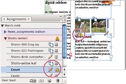 בחלונית Assignments.לשמירת מסמך InDesign בשם חדש עם קישורים לכל קובצי InCopy הקיימים, בחר באפשרות File > Save As. פעולה זו גורמת למשימות בקובץ InDesign להופיע כחסרות עד לעדכונן.