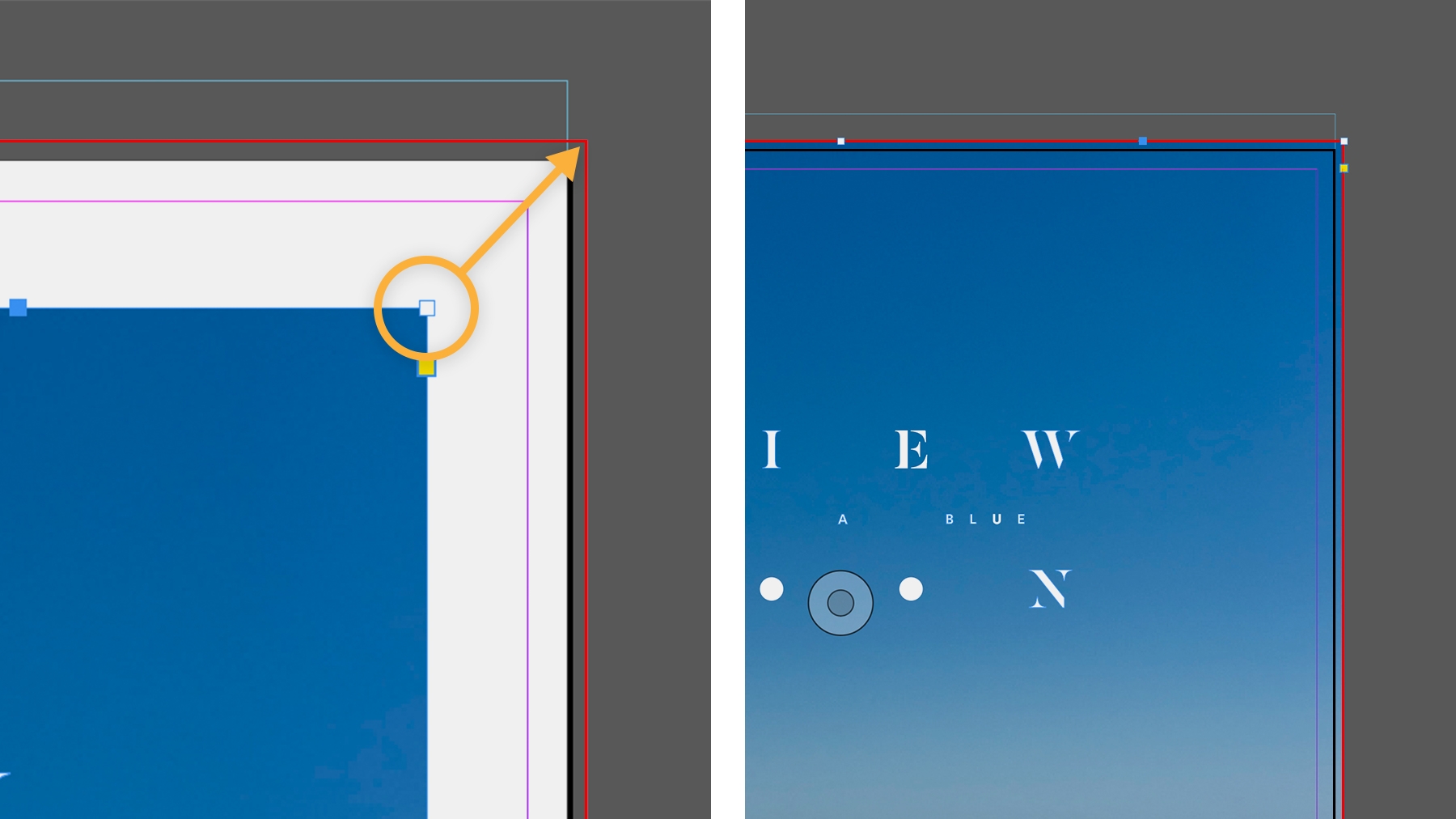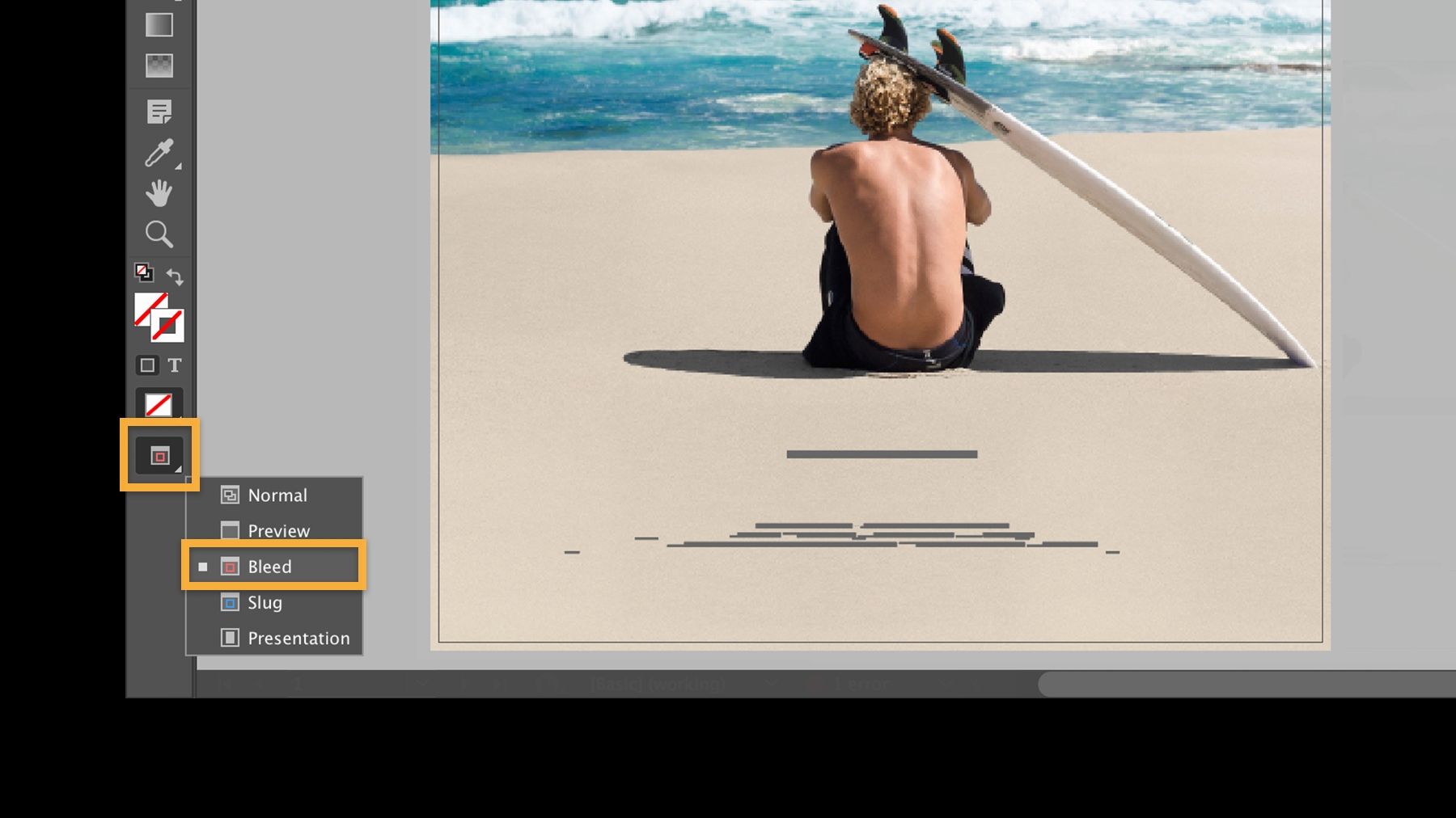 Now that you have some artwork aligned to the bleed guides, you can see how it will appear when printed and trimmed to its final size.