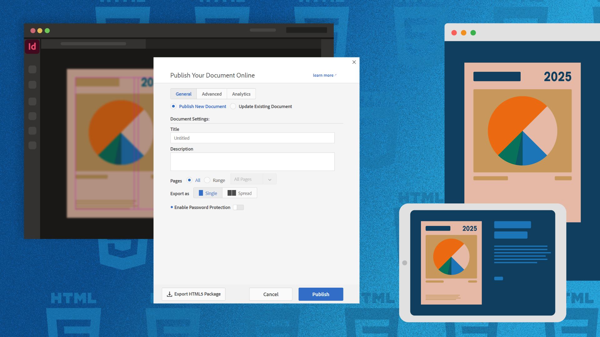 ייצוא מסמכי InDesign כחבילת HTML5 מקל על אירוחם באתר האינטרנט או בשרת שלך, מה שעוזר לשפר את קידום האתרים והנגישות. אפשר לבחור לייצא את הטקסט בתור טקסט HTML או תגיות SVG.