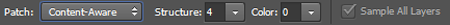 הזינו ערך בין 0 ל- 10 כדי לציין את המידה שבה ברצונכם ש- Photoshop יחיל ערבוב צבעים אלגוריתמי על התיקון. אם תזינו 0, ערבוב צבעים לא יהיה זמין. ערך Color של 10 מחיל ערבוב צבעים מרבי.