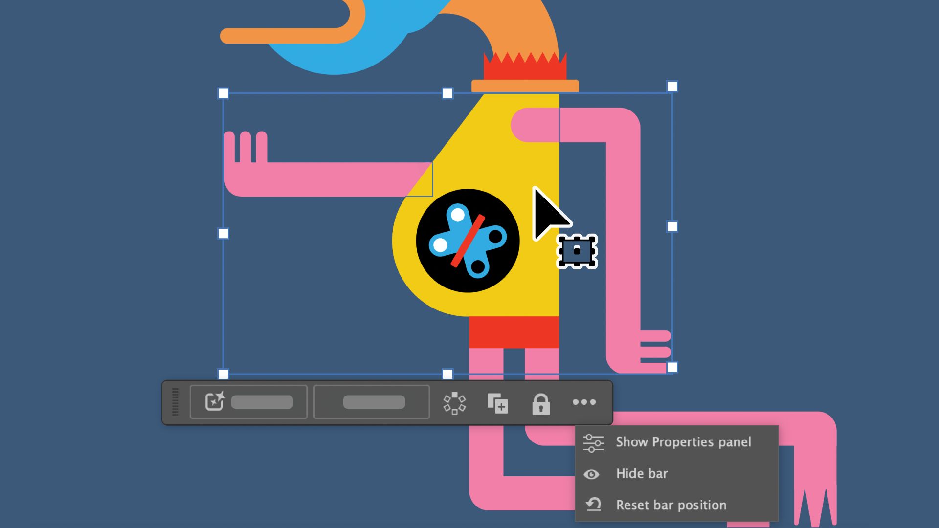 The Contextual Task Bar surfaces the most relevant next actions for the object you select, right in the object's vicinity, allowing you to accomplish your creative goals faster, and helping you find interesting workflows. Learn more about the Contextual Task Bar.