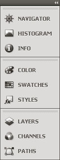 • To add a floating panel or panel group to an icon dock, drag it in by its tab or title bar. (Panels are automatically collapsed to icons when added to an icon dock.)